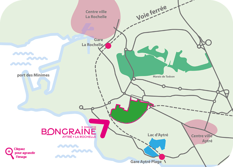 Le quartier de Bongraine se situe non loin du centre-ville aytrésien et jouxte la ville de La Rochelle sur toute sa partie nord. Avec le littoral et les plages à quelques minutes à pied, la situation est exceptionnelle.